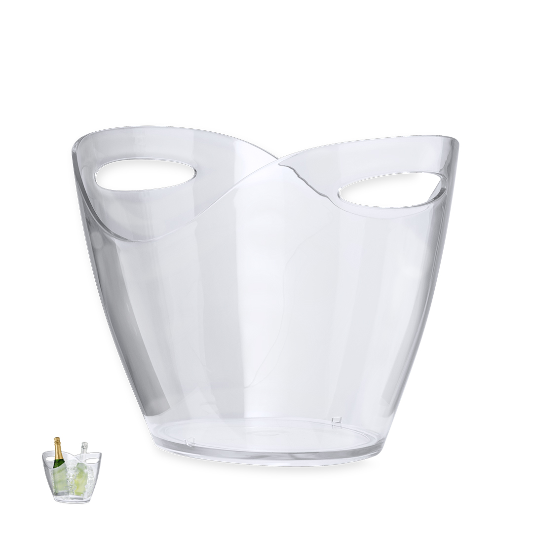 Găleată de gheață transparentă de 8 litri, elegantă, fabricată din PS durabil. Acest accesoriu combină stilul și funcționalitatea, menținând băuturile reci datorită dimensiunii sale mari. Ambalată individual într-un sac cu bule.