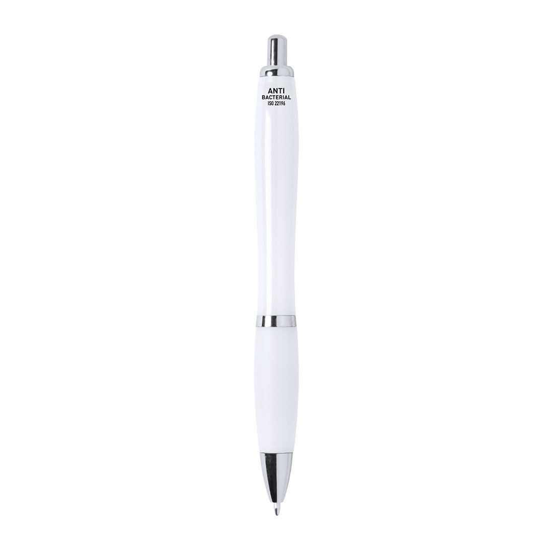 Pix antibacterian. Fabricat din material ABS, special prelucrat pentru a inhiba și preveni creșterea bacteriilor pe corpul pixului prin tehnologia nano argint, un tratament special realizat cu ioni de argint. Mecanism cu buton de apăsare, cu accesorii de culoare argintie și corp de culoare albă. Clip tăiat la matriță și prindere confortabilă, cu cerneală albastră. Articol conform standardului ISO 22196:2011, referitor la măsurarea activității antibacteriene în plastice și alte suprafețe neporoase.