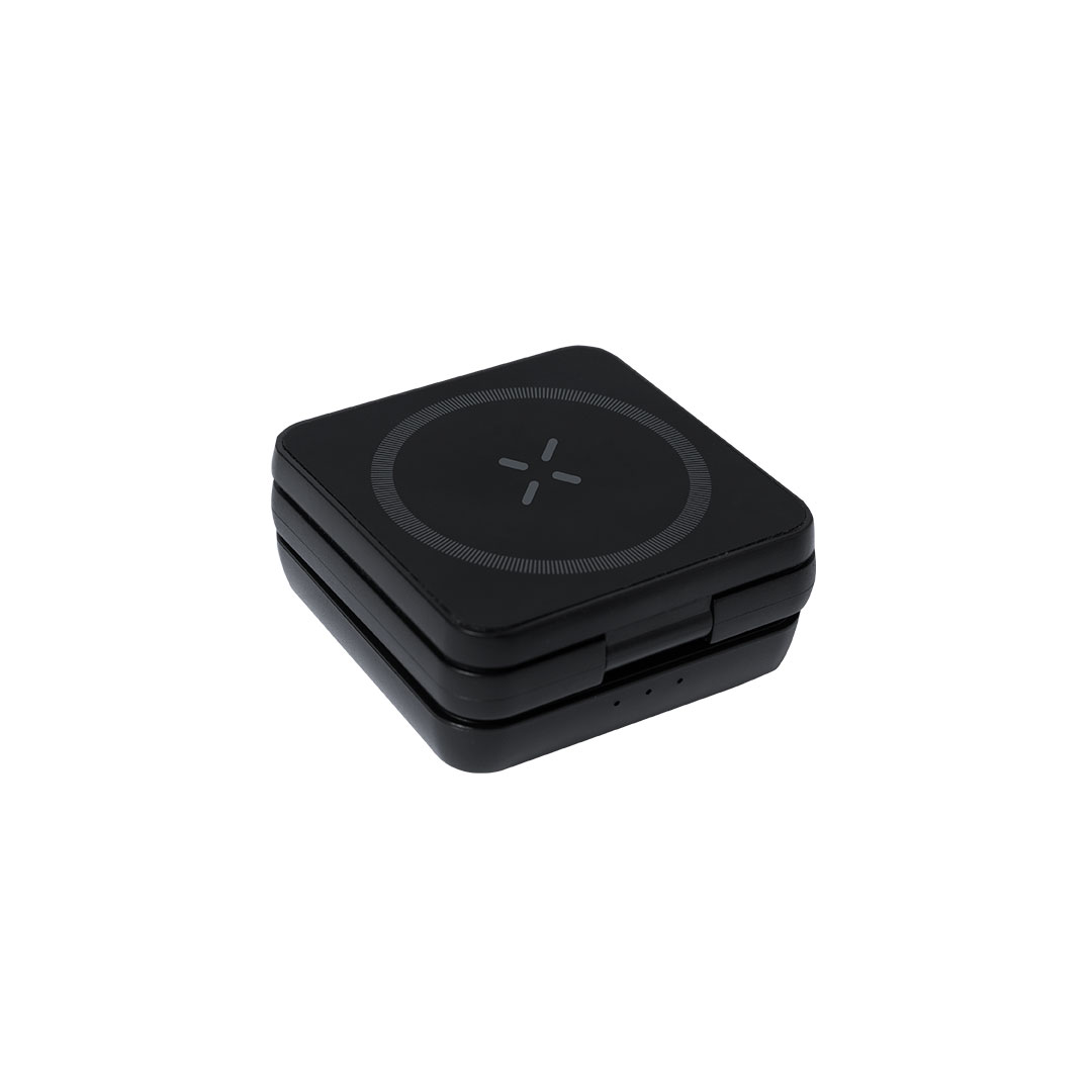 Încărcător wireless magnetic 4-in-1 cu 15W, fabricat din ABS reciclat (RABS). Proiectat pentru încărcarea simultană a unui smartphone, căști, smartwatch și suport. Un gadget all-in-one: pliabil, portabil, de dimensiuni compacte, foarte versatil și cu un design funcțional. Finisaj mat cu o textură cauciucată. Conexiune USB Tip C -cablu inclus-. RABS este un plastic foarte reciclabil care oferă o mare rezistență și o multitudine de aplicații care îl fac o soluție ecologică. Fabricat conform standardelor RoHS și respectă următoarele cerințe de siguranță: Sistem de protecție împotriva supraîncălzirii. Sistem de protecție împotriva suprasarcinilor. Sistem de blocare pentru a preveni scurtcircuitele.