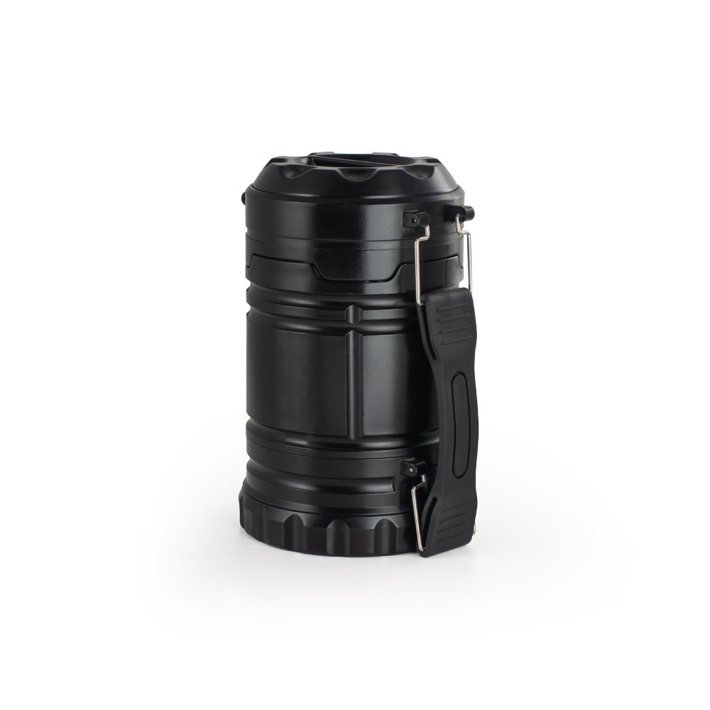 Lanternă 2 în 1 din ABS și PS. 2 moduri de utilizare: lampă de exterior sau de camping, care îți permite să iluminezi suprafețe mari sau ca lanternă folosind mânerul lateral care este, de asemenea, detașabil. Lanterna are un led COB (200 lumeni) și un LED de 1W (70 lumeni). Ideală pentru camping sau activități în aer liber. Include 3 baterii AA. Se livrează într-o cutie. 88 x 140 mm