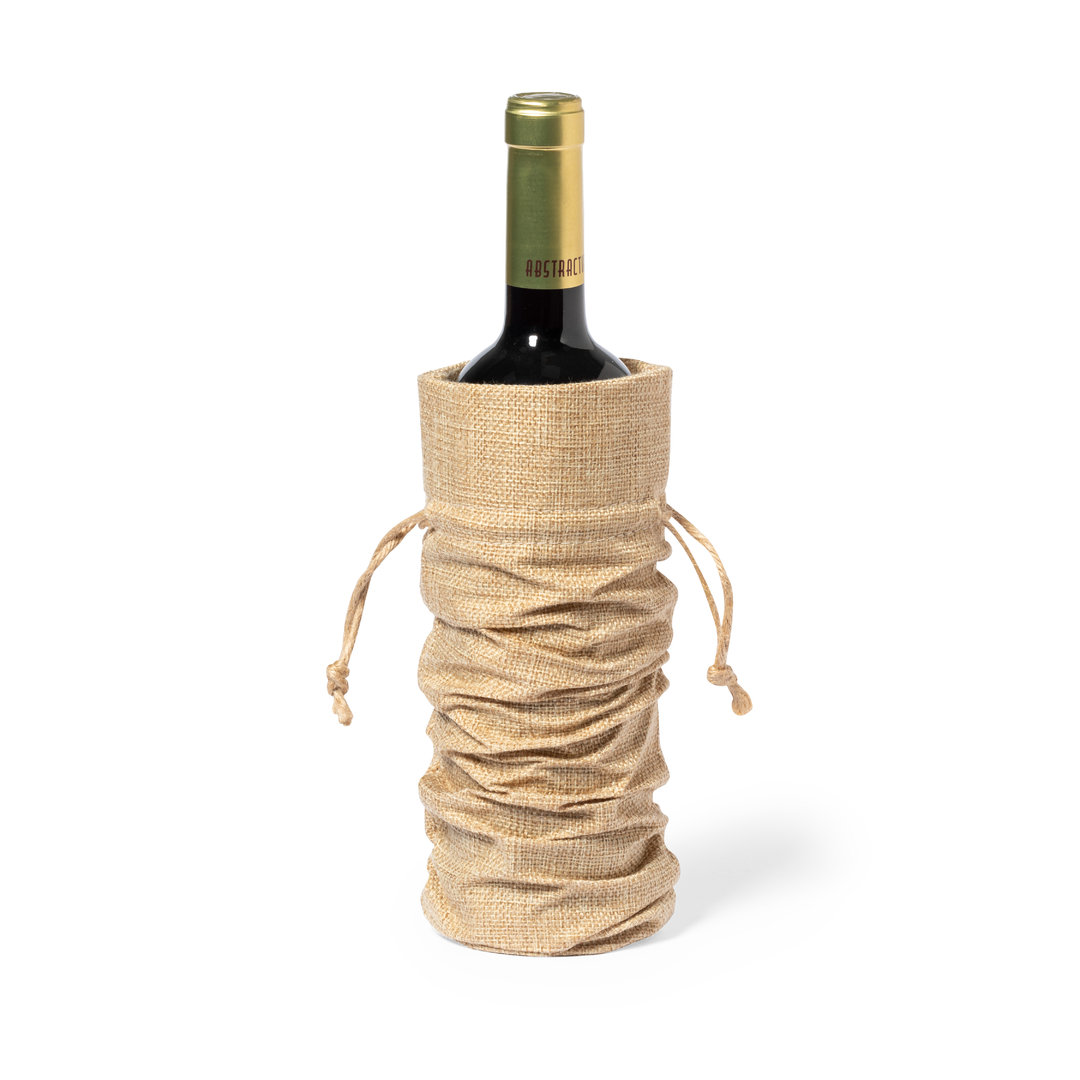 Geantă pentru sticle inspirată din natură. Cu închidere cu șnur din jute, potrivită pentru sticle de 750 ml.