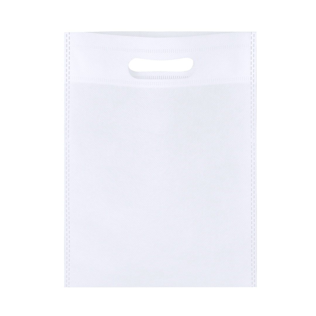 Sac non-woven de 80g/m2 în formă pătrată cu mânere finisate prin sigilare termică.