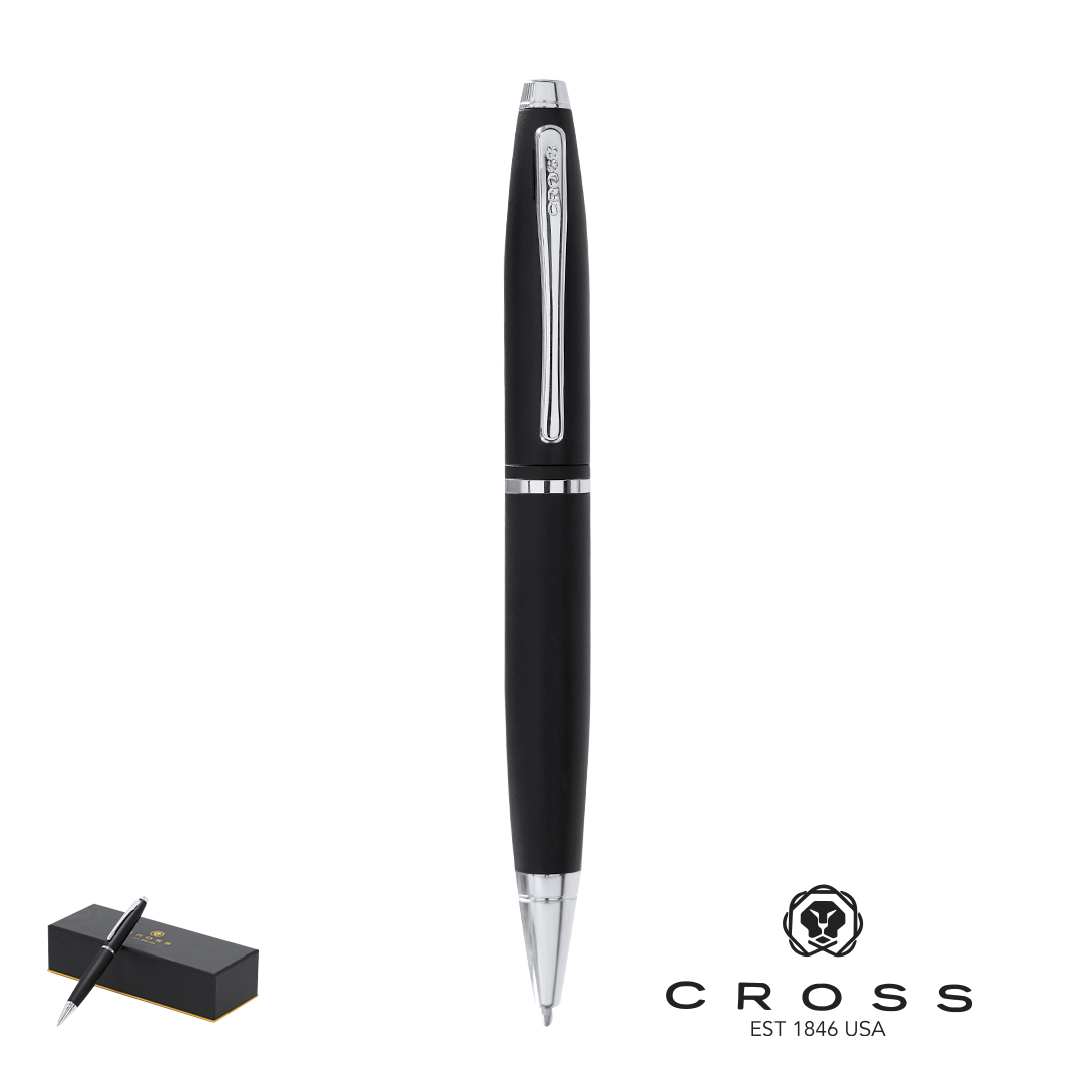 Pix cu bilă Calais de la Cross. Cu mecanism retractabil, design elegant bicolor și corp metalic cu finisaj neted în culori variate. Prezentat într-o cutie individuală elegantă de culoare neagră, cu logo-ul mărcii și interior din catifea moale. Cerneală neagră.