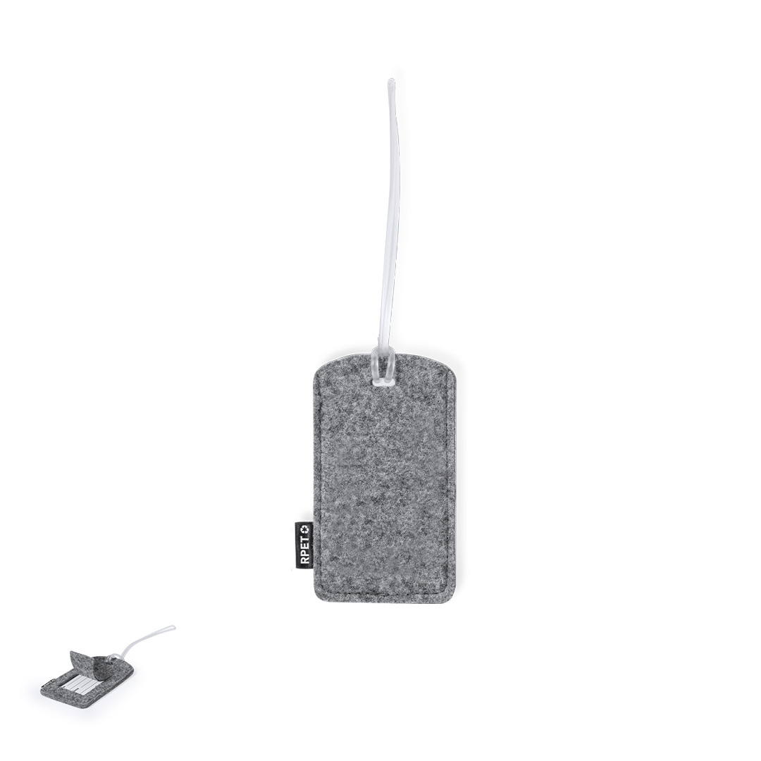 Identificator de bagaje realizat din fetru RPET. Proiectat pentru a fi atașat la orice valiză folosind cureaua sa flexibilă și cu un card pentru informații de bază. Fabricat din fetru RPET, cu fereastră și o etichetă RPET. Fetru RPET este rezultatul combinării proceselor de reciclare a materialelor plastice împreună cu tehnica milenară de fabricare a fetelui, rezultând un material eco-trend care, pe lângă faptul că este de origine reciclată, devine și reciclabil.
