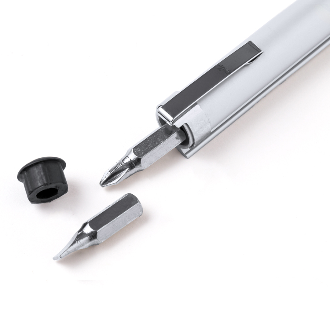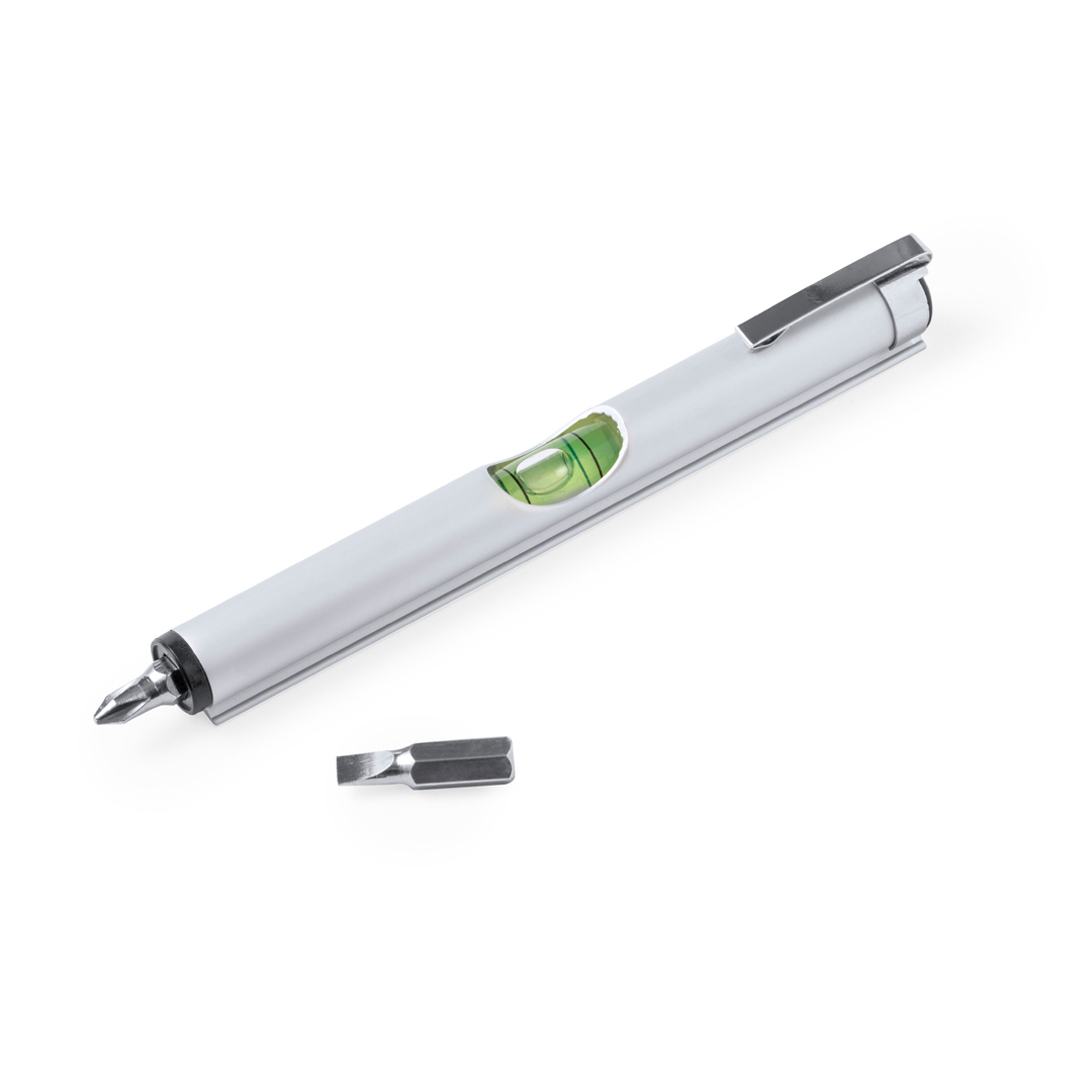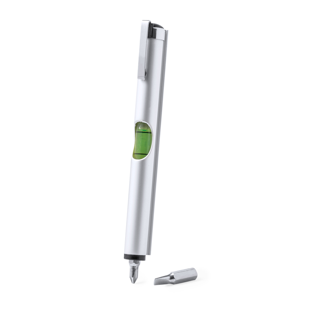 Un multitool practic fabricat din aluminiu, cu un nivel integrat în carcasă și două capete de șurubelniță (plat și Philips) în interior. Cu un clip din metal cromat și prezentat într-o cutie de design kraft.